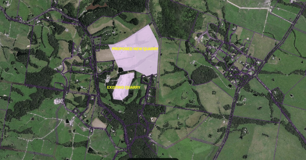 In 2024 the existing quarry owners lodged a proposal to develop a new quarry. This new quarry is not an extension but is in fact a new quarry approximately 4 times the size of the existing quarry.